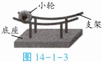 2. 如图14-1-3所示的摆设正常运行时,小轮在支架上来回滚动,每次到达的最大高度相同。小明发现摆设上有一个电源,关掉电源后,小轮逐渐停了下来。下列说法正确的是(