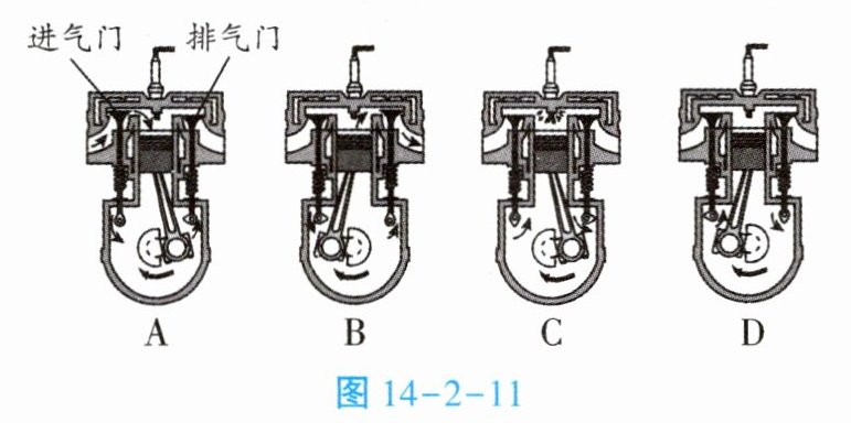 1. 如图 14 - 2 - 11 是某四冲程汽油机顺序被打乱的工作图,下列说法正确的是(