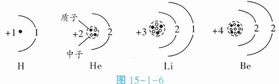 3. 原子的中心是原子核,原子核周围有电子绕其运动。如图 15-1-6 所示是四种原子的结构示意图,由图中信息可知(