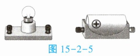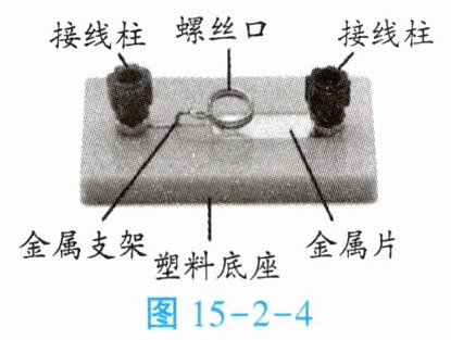 (1) 我们使用灯座和电池盒把小灯泡和电池固定下来,请从不同的角度仔细观察灯座的结构(如图 15 - 2 - 4),口述灯座设计的巧妙之处。