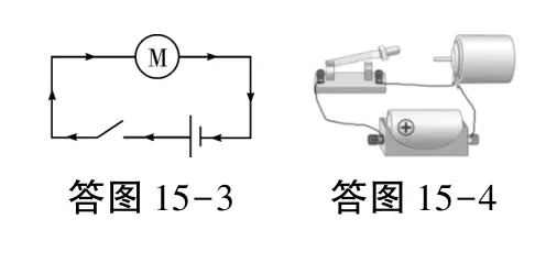 1. 连接图 15 - 2 - 9 中的实物,使开关闭合后,小电动机能够转动起来。