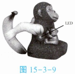 5. 拆开图 15-3-9 所示玩具,发现内有电源、开关、LED、电动机 (符号“$ ◯ M $” ) 各一个,以及导线若干。闭合开关,电动机转动,LED 亮。将电动机一端连线断开,闭合开关,LED 亮。