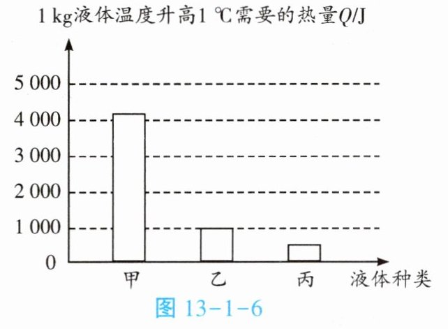2. 图13-1-6反映了三种质量均为 $1kg$ 的不同液体温度升高 $1^{\circ}C$ 所需要的热量。