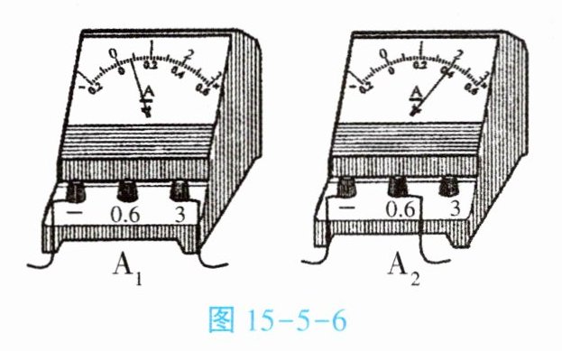 2. 小明连接的电路如图 15 - 5 - 5 所示,闭合开关后,两电流表指针偏转情况如图 15 - 5 - 6。