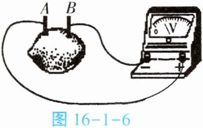 (选填“$ A $”或“$ B $”)。(3)在图 16 - 1 - 6 的电路中,电源是水果电池,它工作时把