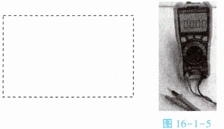 1. 在上面的虚线框中画出用图 16 - 1 - 5 的数字万用表的“mA”挡测量电压表工作时通过电压表的电流大小的实验电路图。