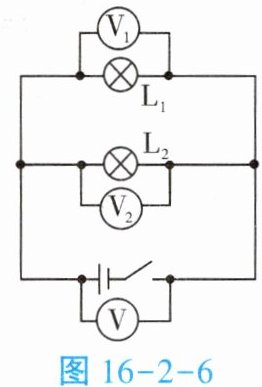 2. 如图 16-2-6 所示,闭合开关后电压表 $ V_2 $ 示数为 6 V。下列说法正确的是(