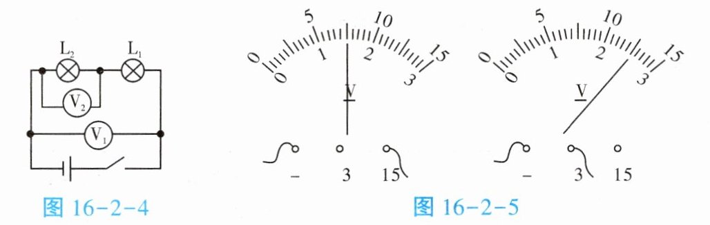 1. 图 16-2-4 所示的电路,闭合开关后,两个电压表的示数如图 16-2-5 所示。