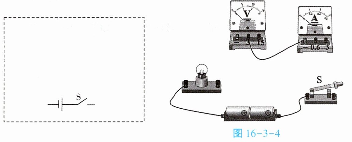 (2)根据所画的电路图,用笔画线代替导线将图 16-3-4 中的实物连接起来,使之成为符合实验要求的电路。