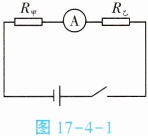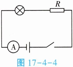 (2) 若此小灯泡与一阻值为 $10\ \Omega$ 的定值电阻 $R$ 串联接入电源两端,如图 17-4-4 所示,此时电流表的示数为 $0.4\ A$,则此时电源两端电压为多少?