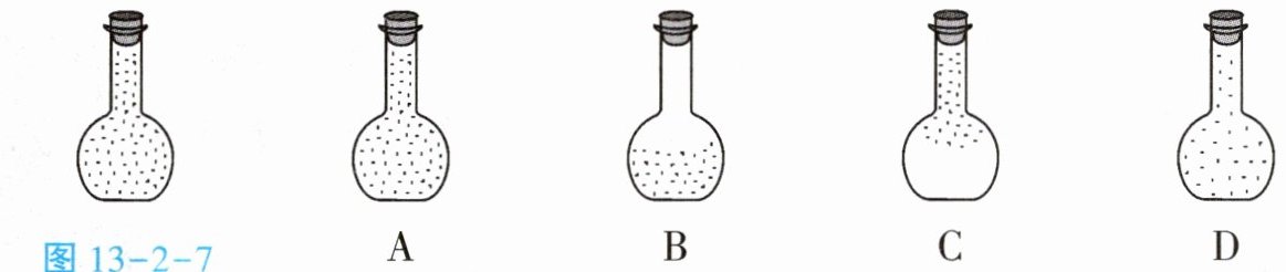 2. 常温下密封的烧瓶中装有某种气体,如图13-2-7所示,图中黑点表示气体分子。用抽气筒抽出该烧瓶中部分气体后仍密封,下面选项中能正确描述烧瓶内剩余气体分子分布的示意图是