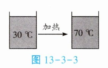 1. 如图 13-3-3 所示,同一杯水质量不变,经过加热,温度从 $ 30^{\circ}C $ 升高到 $ 70^{\circ}C $,则这杯水的内能是加热前还是加热后更大呢?