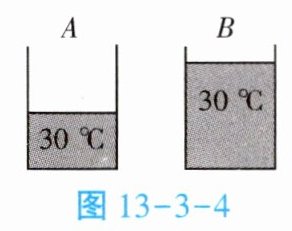 2. 图 13-3-4 中两杯水的温度相同,但 $ B $ 杯中水的质量更大,则哪一杯水的内能大?