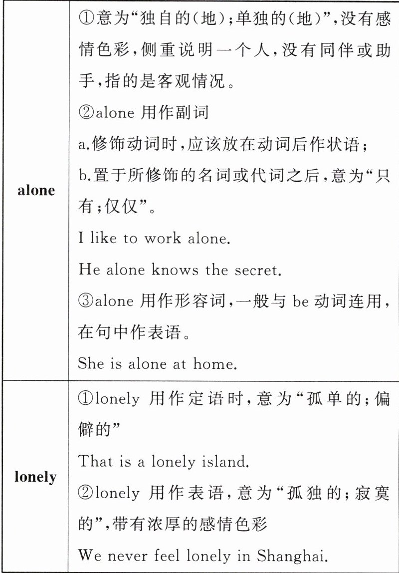. Actually,it’s an everyday part of life and he enjoys living .A. alone;alone B. lonely;alone C. alone;lonely