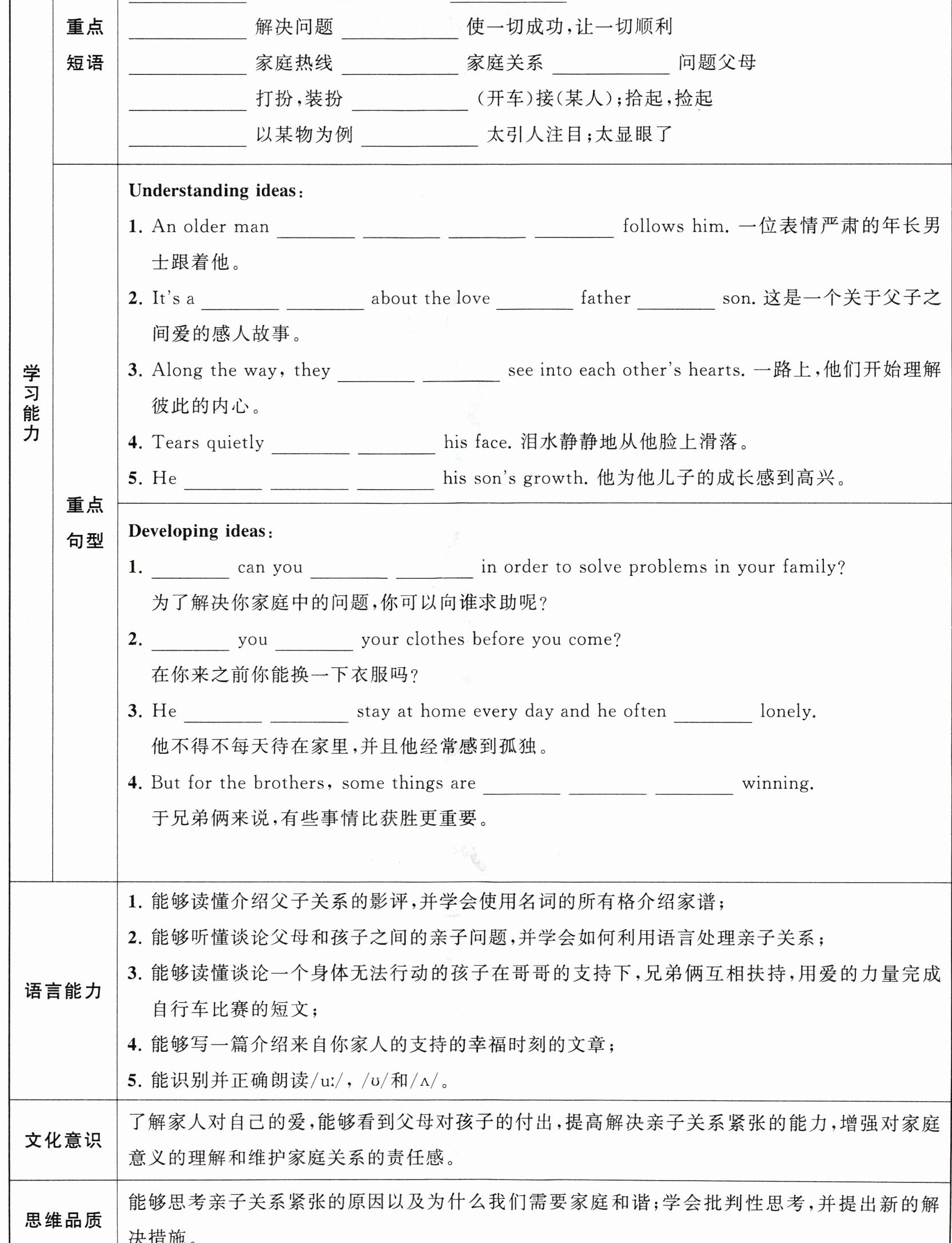 winning.2. 能够听懂谈论父母和孩子之间的亲子问题,并学会如何利用语言处理亲子关系;