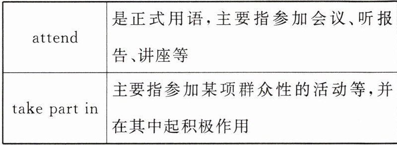 考点 4 attend v. 上(学);出席,参加(事件或活动)