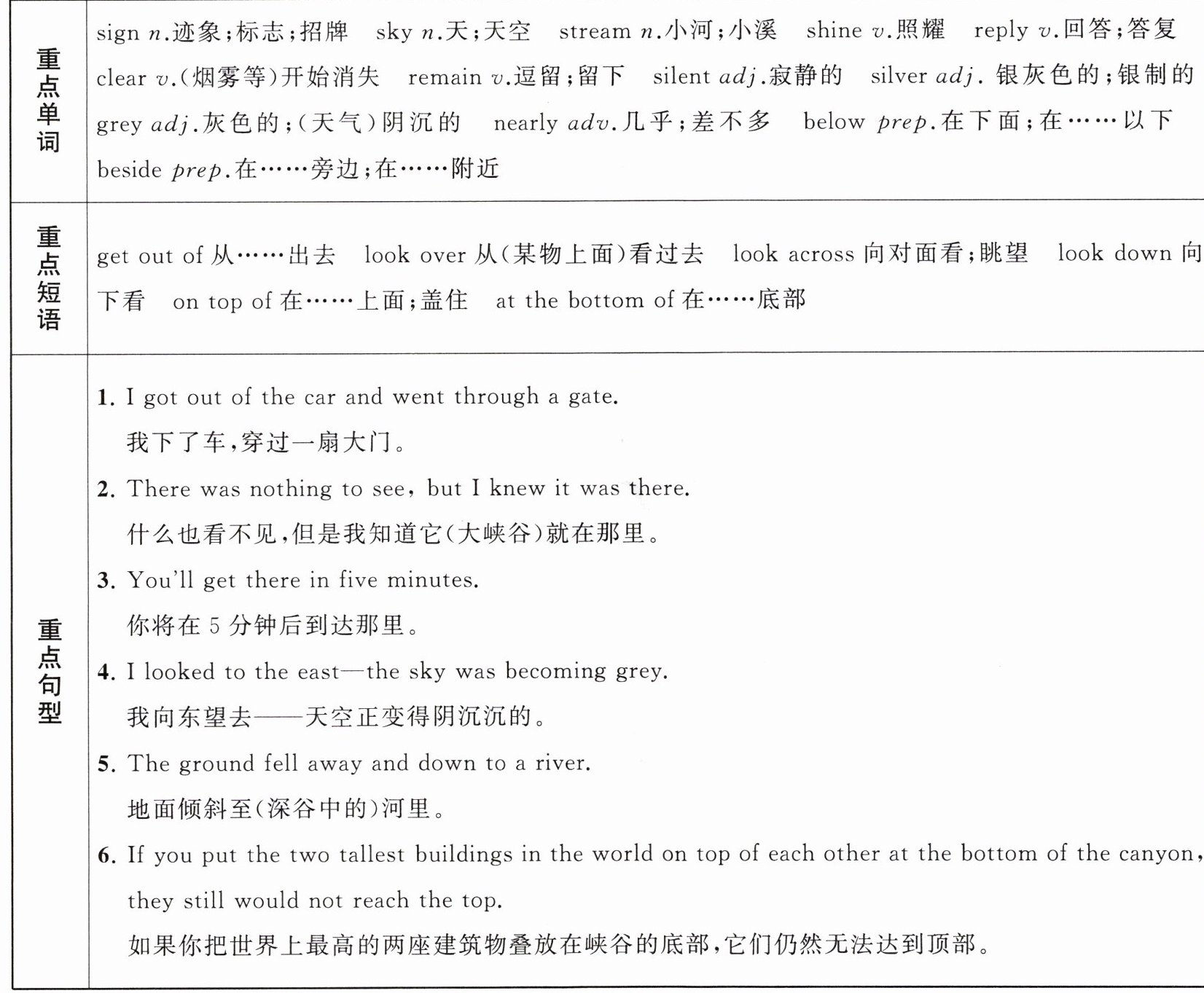 * I got out of the car,went through a gate and walked along a dark path. 我下了车,穿过一扇大门,沿着一条黑暗的小路走去。(教材·P4)