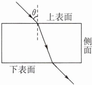3. 如图所示,为了探究光折射时的特点,某实验小组将一束光斜射到一块平行板玻璃砖的上表面,并让其出射光线从玻璃砖下表面射出,他们得到以下结论: