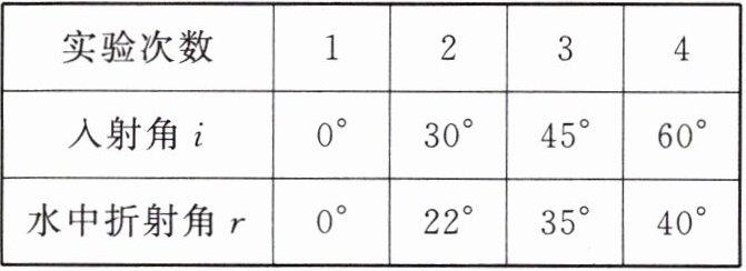② 将一束激光从空气射向水面 $O$ 处,激光在 $O$ 处发生折射,记录入射角和折射角;