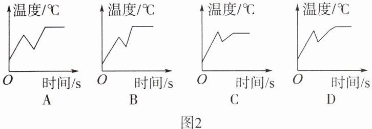 (4)另一组小华同学在实验中为了缩短时间,当实验完成了一半时,将烧杯中的水倒掉了一部分继续加热,图2是其实验过程的温度随时间变化的关系图像,正确的是____。