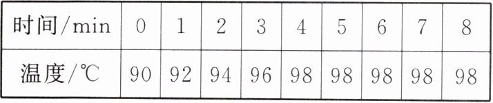 (3)在水温升高到90℃后,小明每隔1min观察1次温度计的示数,记录在表中,持续8min后停止读数。