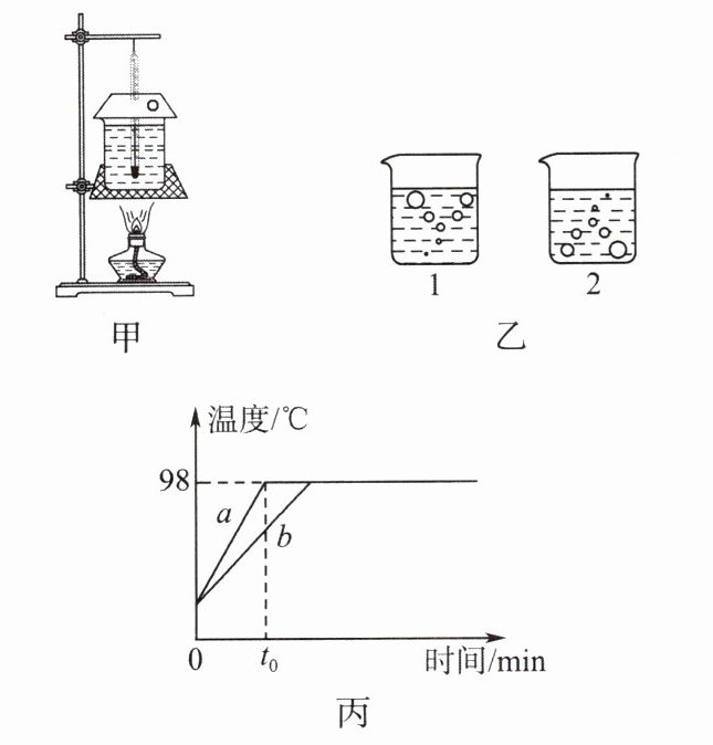 8. 如图甲所示,两名同学分别用完全相同的装置探究“水沸腾时温度变化的特点”,绘制了a、b两杯水的温度随时间变化的关系图像,如图丙所示。