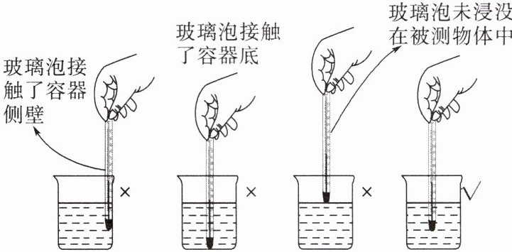。二放:温度计的玻璃泡与被测物体充分接触,不要碰到