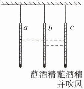 温度计示数最高。(均选填“a”“b”或“c”)(2)酒精蒸发时会向温度计