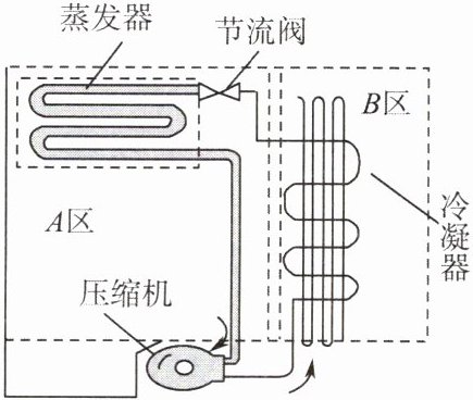 7. 如图所示是常见的电冰箱制冷原理的简图,下列关于电冰箱的说法错误的是(