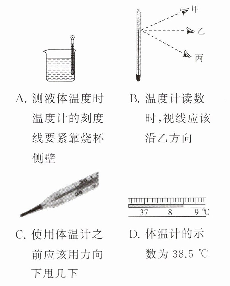 D.体温计和普通温度计使用前都应用力甩动使水银回到下端玻璃泡中