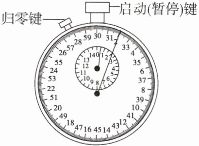 - 归零键:按动一次,分钟指针、秒钟指针都____。$\n$启动(暂停)键:按动一次,开始计时;再按动一次,停止计时。