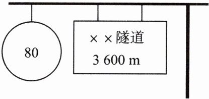 (1)标志牌上的数字"80"表示汽车通过该隧道时,行驶速度不能超过80 km/h,"××隧道3600 m"表示隧道全长3600 m。