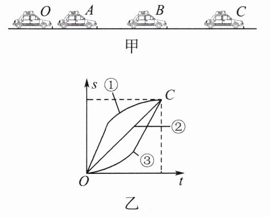 (3)在如图乙所示的 $ s-t $ 图像中,①②③三条曲线能大致描述汽车从 $ O $ 点到 $ C $ 点整个运动情况的图像是______