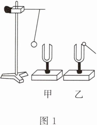 (1)如图 1 所示,在教室里,小明敲响乙音叉时,与甲音叉的叉股接触的乒乓球会被弹起来,这一现象可以说明:发声体在