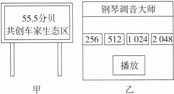 1. 如图所示是生活中的两个情景,图甲是居民小区噪声监测器,显示环境噪声为55.5分贝。图乙是钢琴调音师正在用手机上的一个调音软件播放音叉256、512、1024、2048(Hz)的标准音来校准琴音。下列说法正确的是(