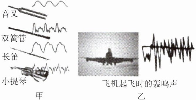 1. 如图甲所示是乐器发出声音的波形图,我们把听起来优美动听的声音称为____。如图乙所示是飞机起飞时发出的轰鸣声的波形图,像这样听起来杂乱刺耳的声音称为____。