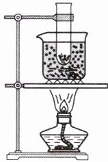 6. 把盛有碎冰块的试管插入烧杯的碎冰块中,用酒精灯对烧杯底部加热。如图所示,当烧杯中的冰块大部分熔化时,试管中的冰(