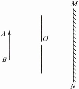 3. 请画出物体AB通过小孔O后在光屏MN上成像的光路图。