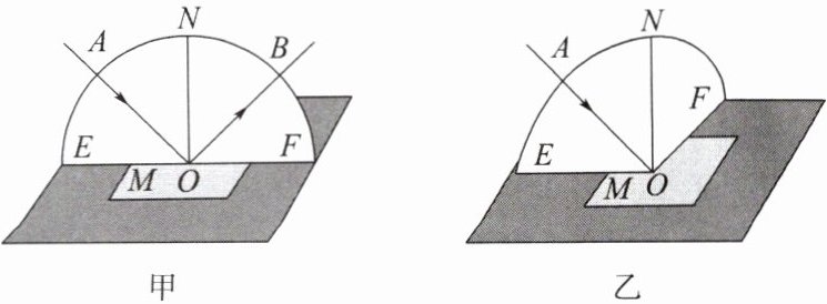 (2)若以ON(法线)为轴,将屏F向后转动,如图乙所示,发现在屏F上不能看到反射光。在屏E上改变入射光AO的入射角度,在屏F上仍不能看到反射光,这说明