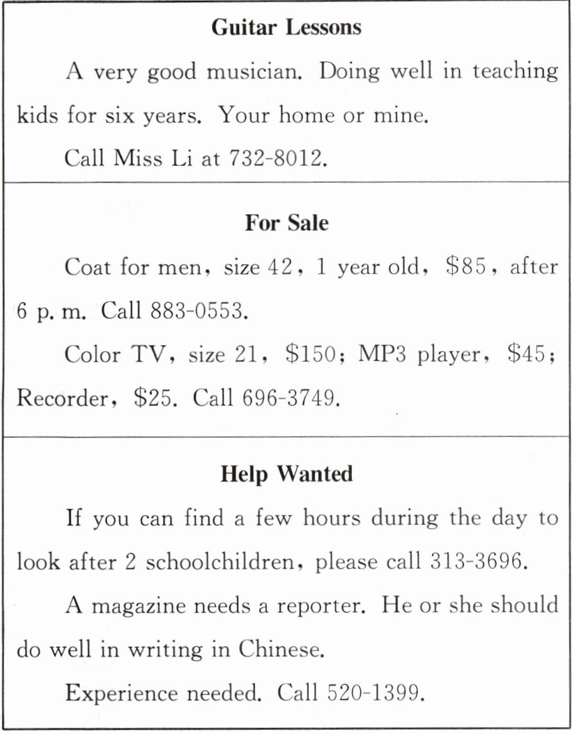 )3. If you want to find a part - time job,you’ll read _________.A. Help Wanted
