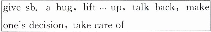 give sb. a hug,lift...up,talk back,make one's decision,take care of