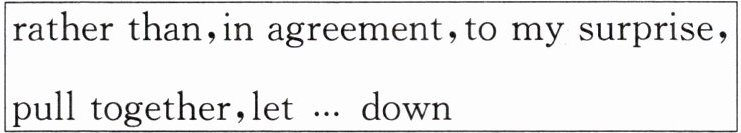 rather than, in agreement, to my surprise, pull together, let... down
