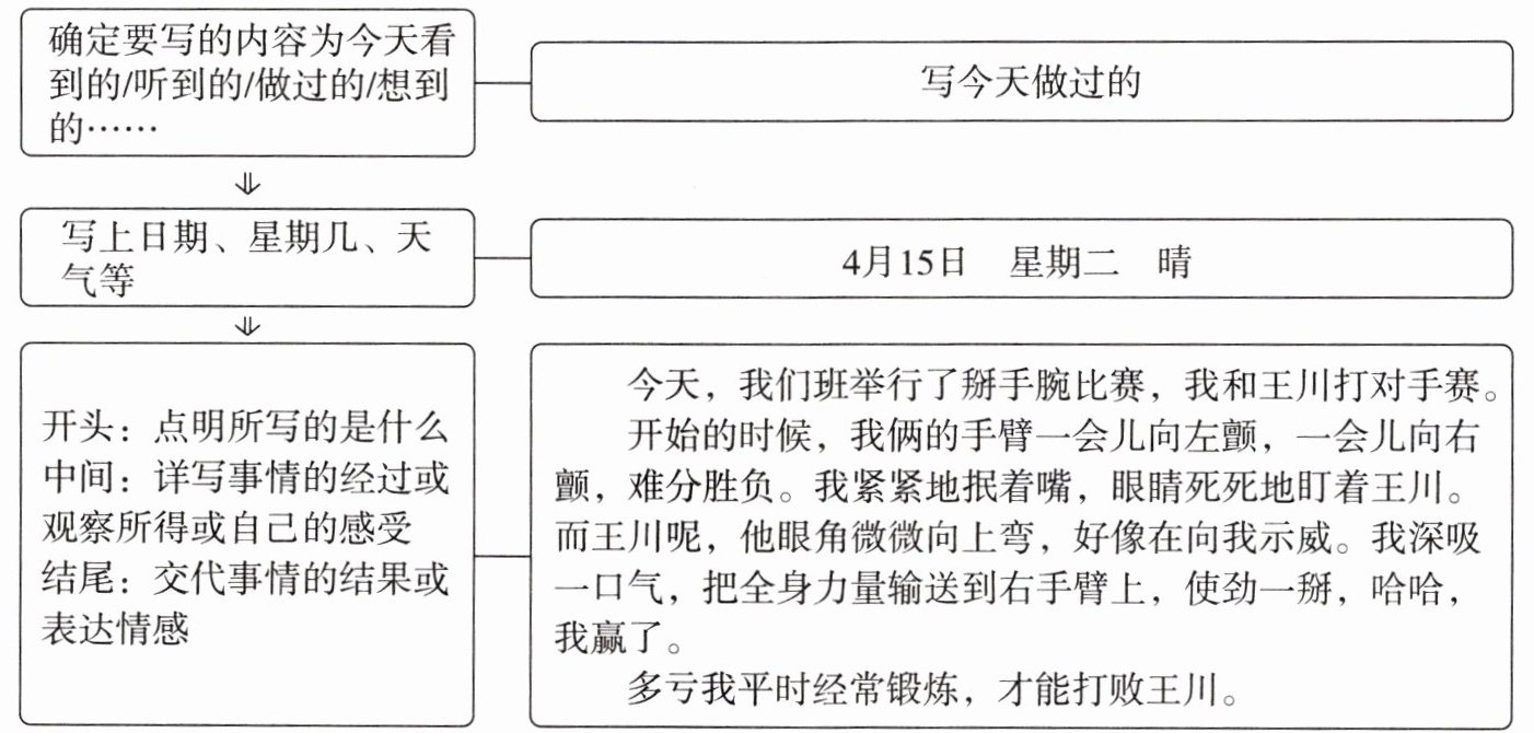 开始的时候,我俩的手臂一会儿向左颤,一会儿向右颤,难分胜负。我紧紧地抿着嘴,眼睛死死地盯着王川。而王川呢,他眼角微微向上弯,好像在向我示威。我深吸一口气,把全身力量输送到右手臂上,使劲一掰,哈哈,我赢了。