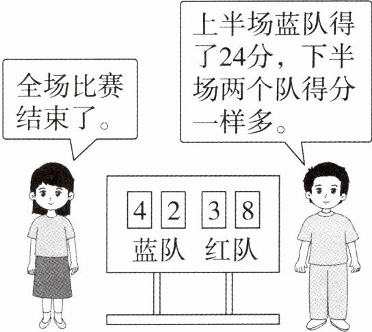 4 学校举行篮球比赛,比赛分为上半场和下半场。上半场红队得了多少分?