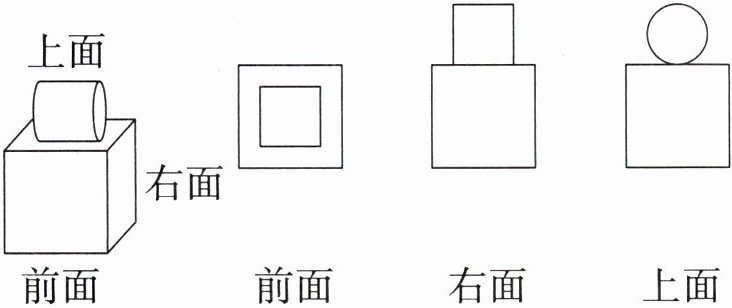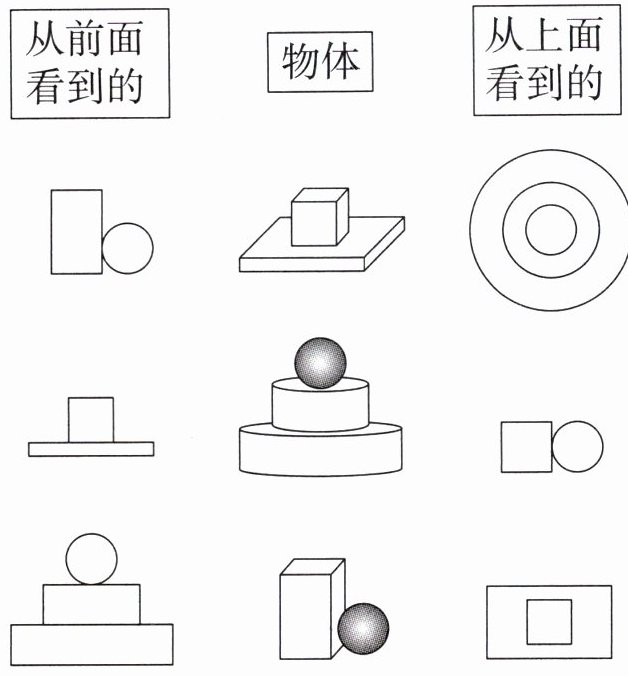 2 每个图形是从哪个面看到的?连一连。