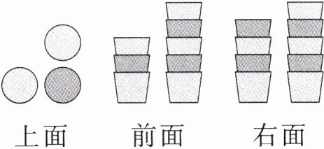 5 午饭时间到了,婷婷帮奶奶准备碗筷。她从上面、前面和右面三个方向看奶奶家的碗,看到的图形如下,猜一猜奶奶家一共准备了多少个碗?