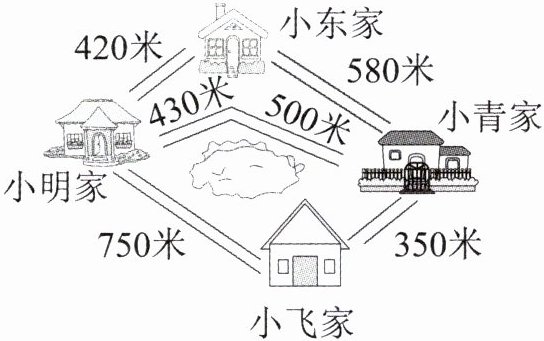 (2)小明从家里出发到小青家,按最近的路线走,要走多少米?