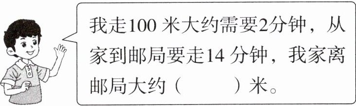 )米。我走100米大约需要2分钟,从家到邮局要走14分钟,我家离邮局大约(