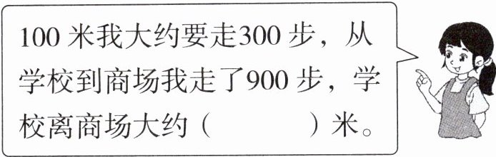 100米我大约要走300步,从学校到商场我走了900步,学校离商场大约(