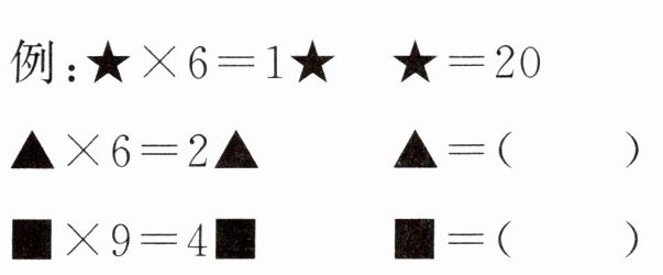 例:$\bigstar×6 = 1\bigstar$ $\bigstar = 20$